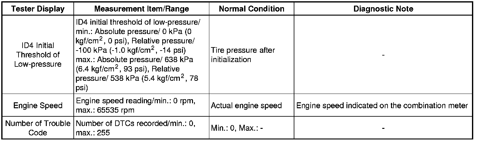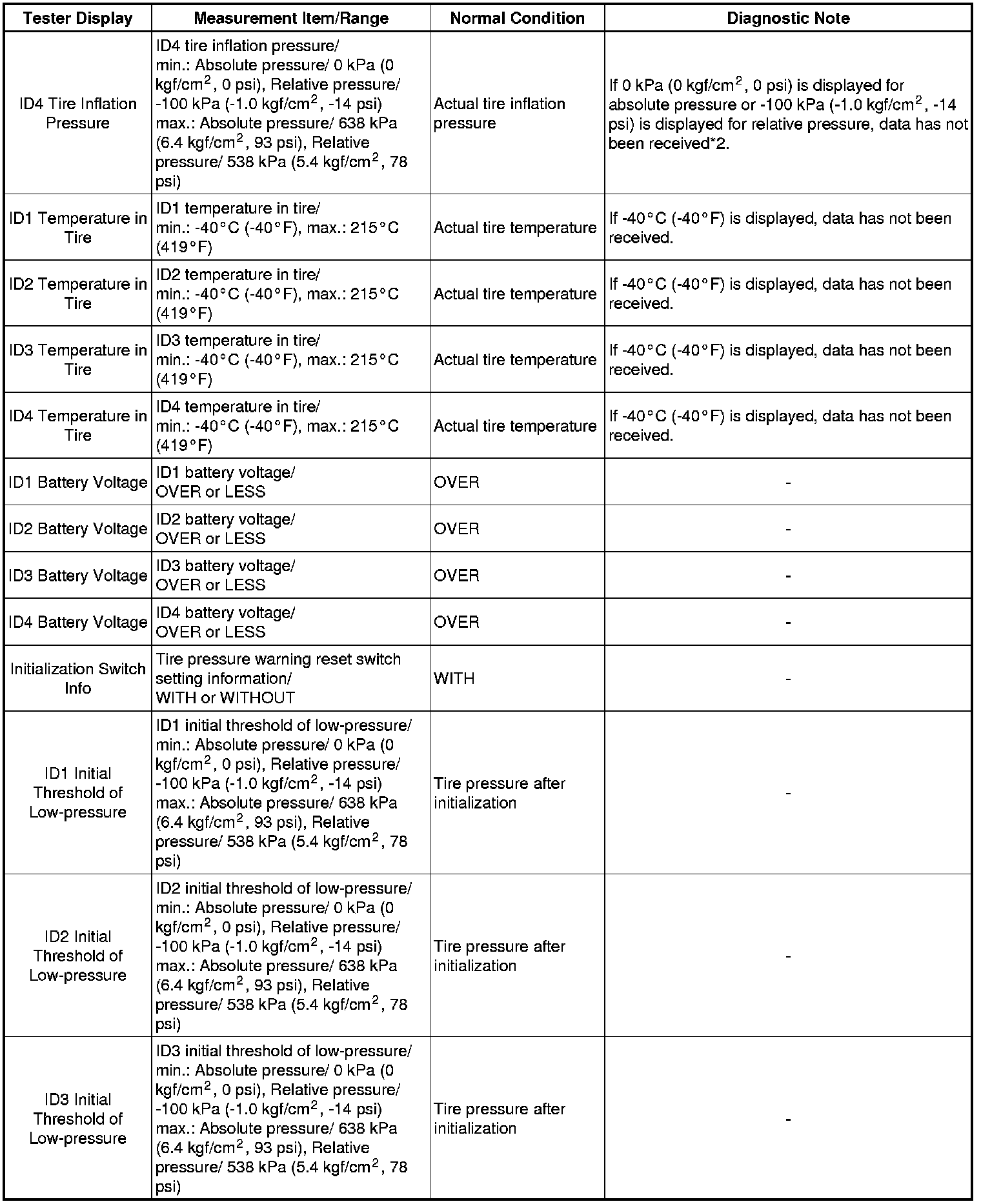 TIRE PRESSURE MONITORING: TIRE PRESSURE WARNING SYSTEM: DATA LIST / ACTIVE TEST