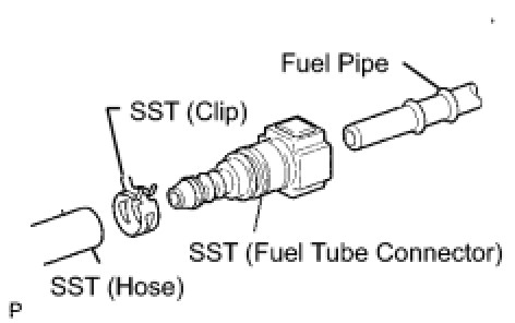 (1) Connect SST (fuel tube connector) to SST (hose), then connect them to the fuel pipe (vehicle side).