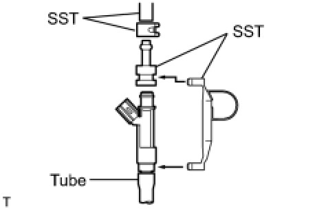 (3) Connect SST (adapter and hose) to the injector, and hold the injector and union with SST (clamp).
