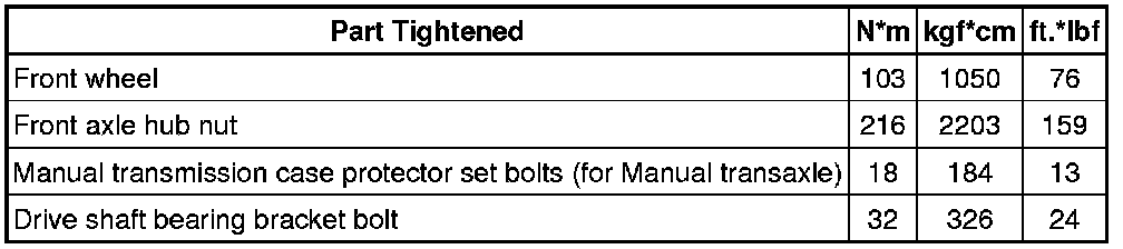 SPECIFICATIONS: DRIVE SHAFT / PROPELLER SHAFT: TORQUE SPECIFICATIONS