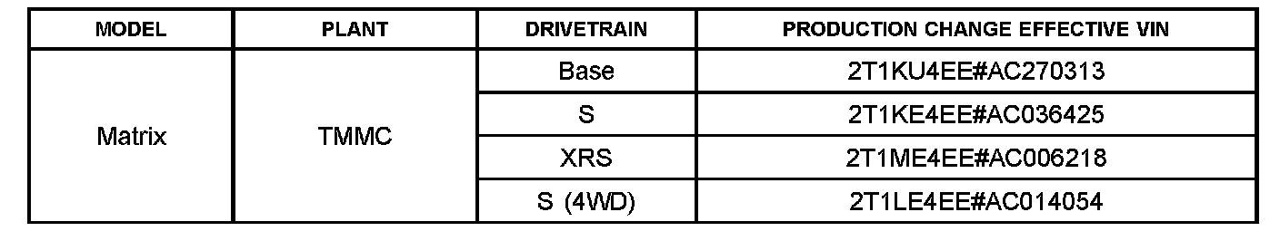 This TSB applies to vehicles produced BEFORE the Production Change Effective VINs shown.