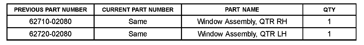 Replace the Quarter Window Glass with a new Service Part.