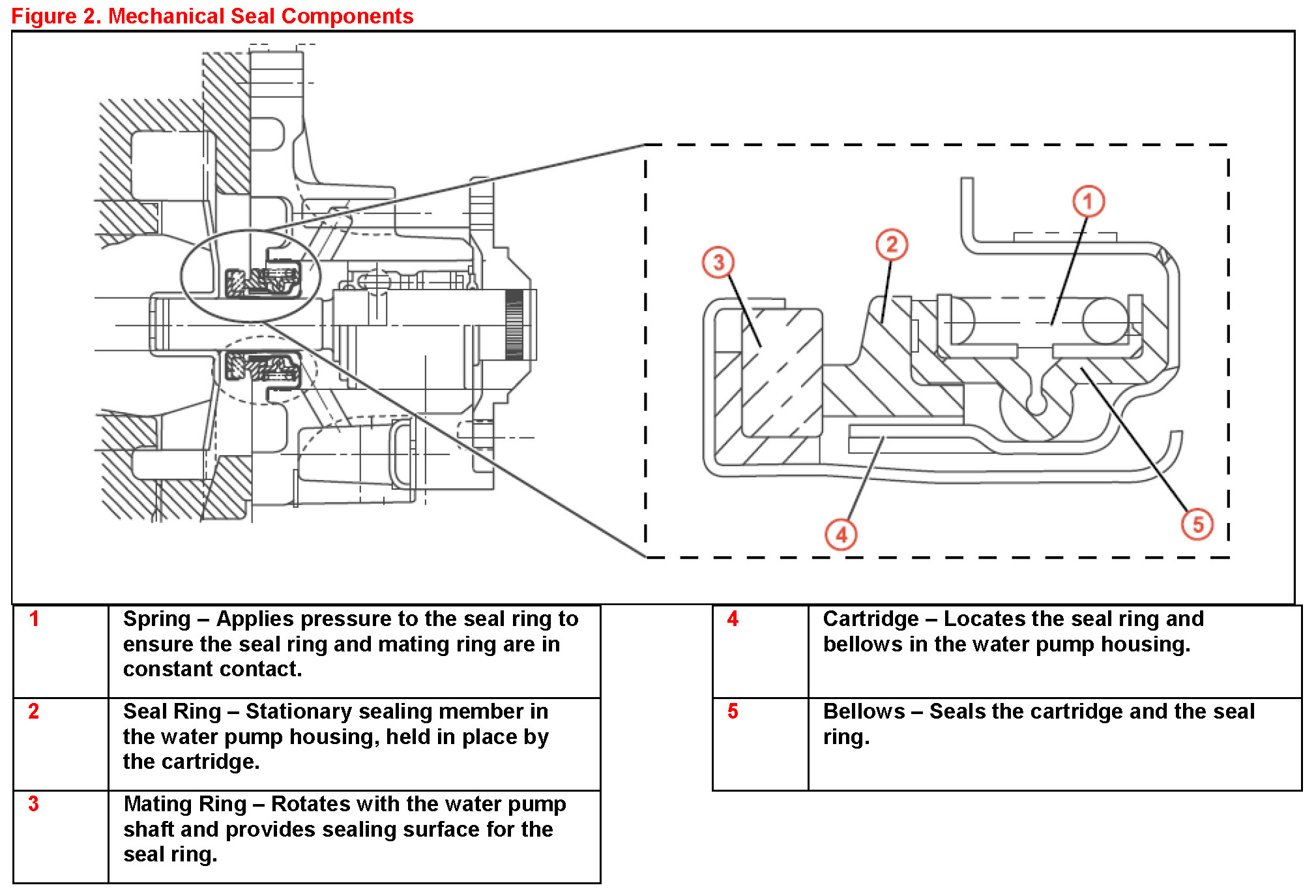The seal and mating rings are lubricated by the surrounding coolant; a small amount of coolant leakage is normal.