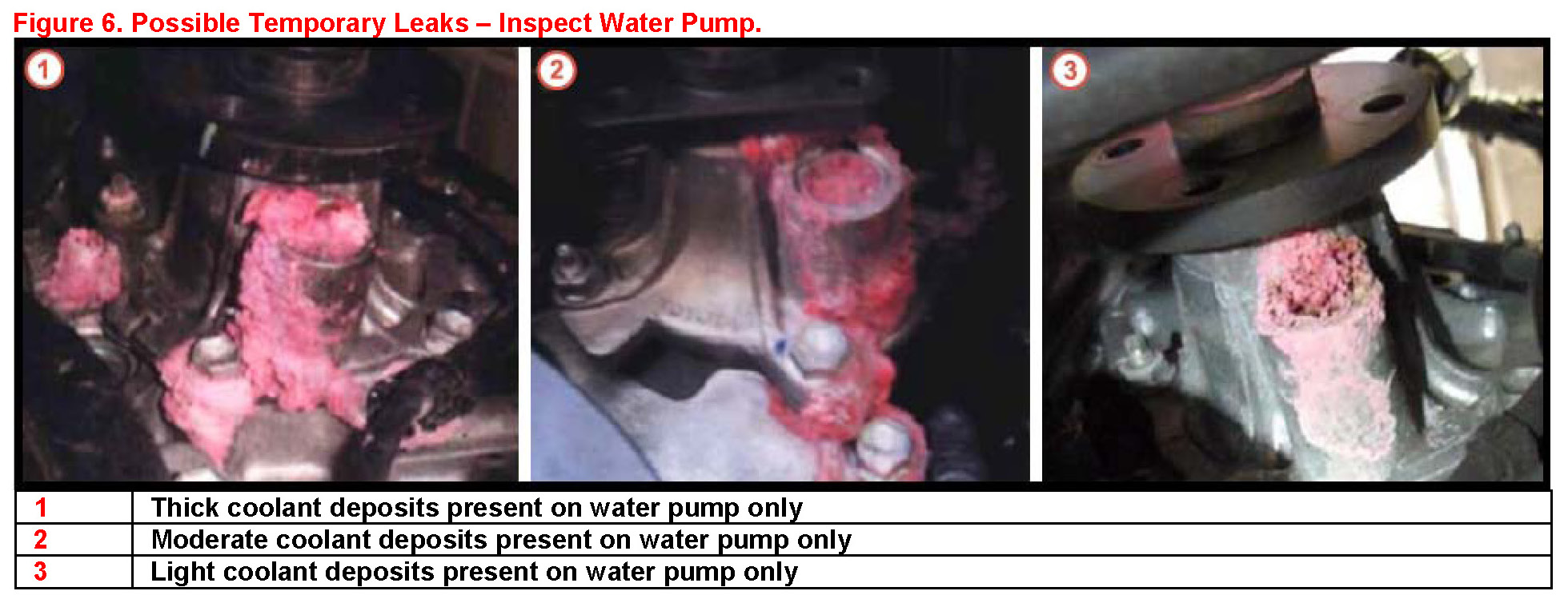 This service bulletin contains water pump leak inspection and diagnostic tips.