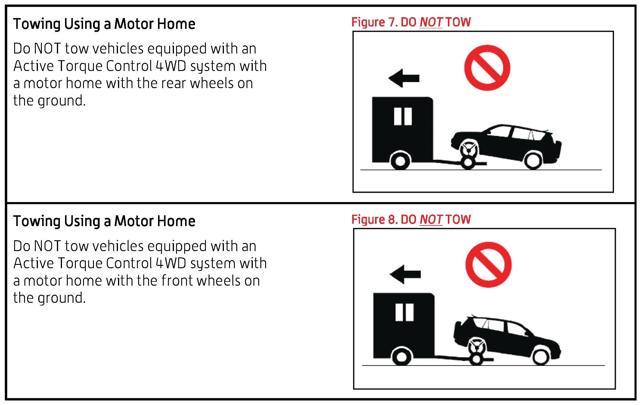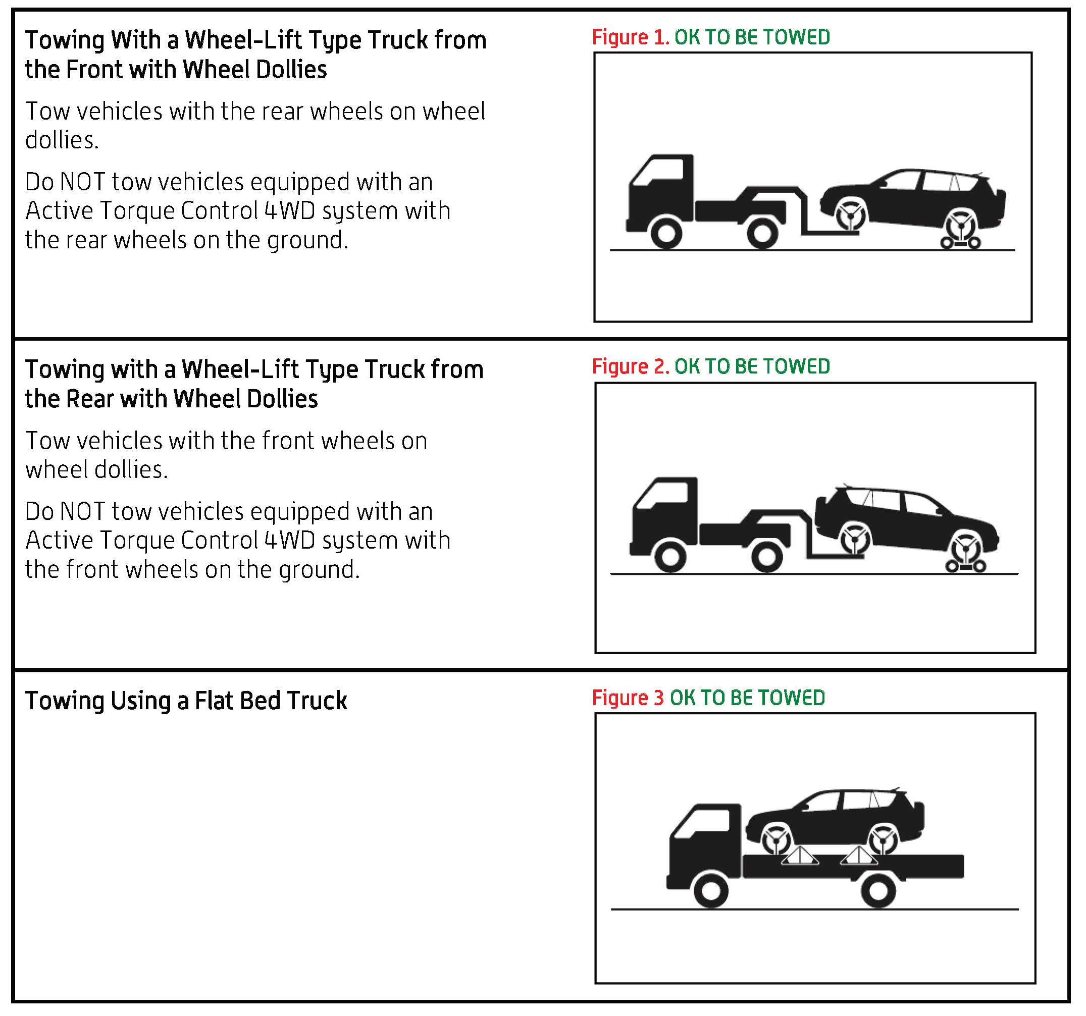 - Never tow a vehicle equipped with an Active Torque Control 4WD system with the front or rear wheels on the ground.