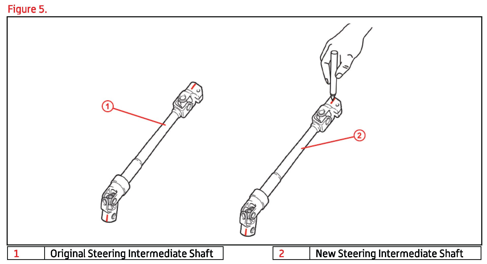 B. Transfer the matchmarks on the original steering intermediate shaft to the same locations on the NEW steering intermediate shaft.