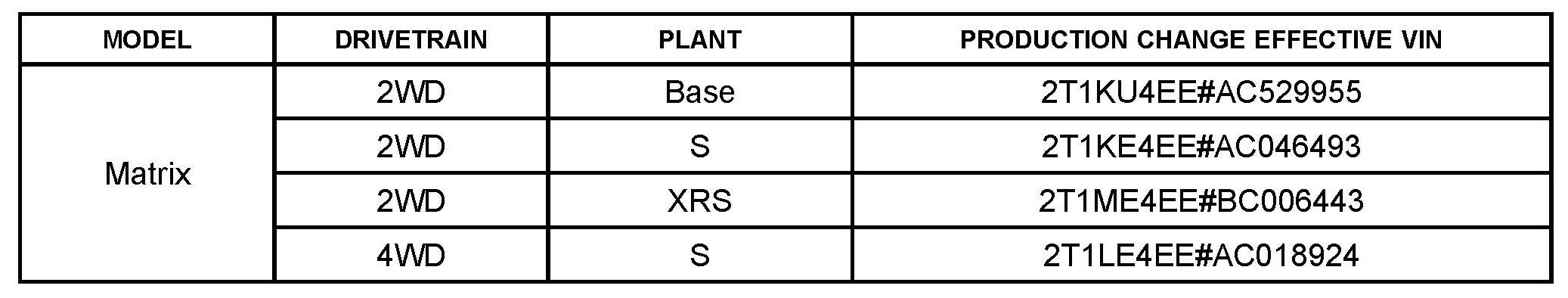This TSB applies to 2009 - 2011 vehicles built BEFORE the Production Change Effective VINs shown.