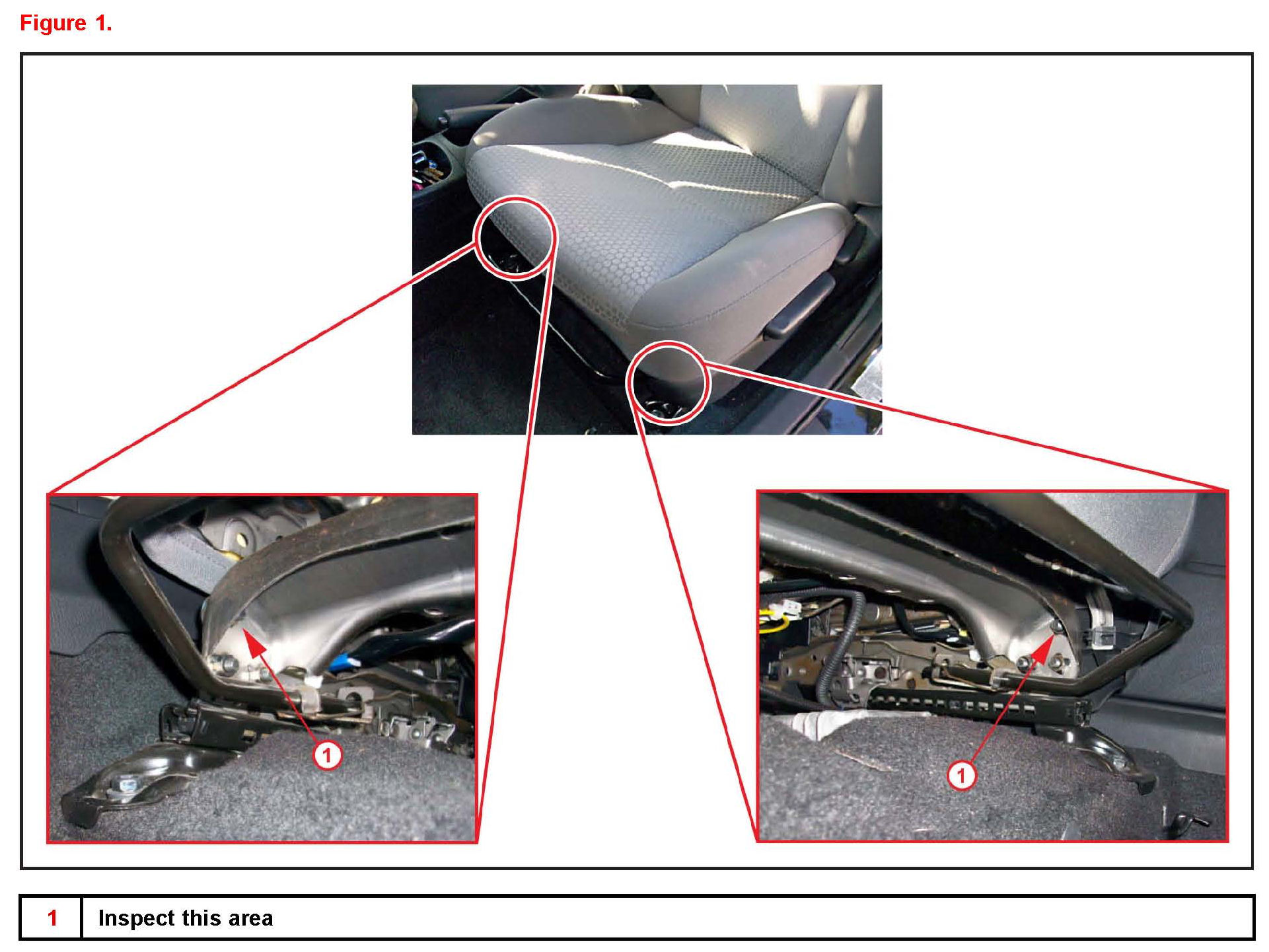 2. Inspect the front seat bolts for looseness or rattling.