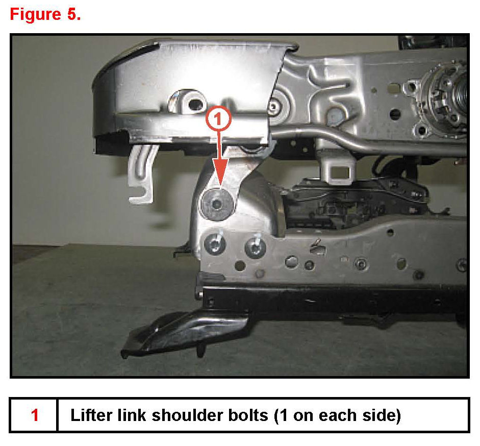 10. Install and finger tighten the 2 lifter link shoulder bolts (1 on each side).