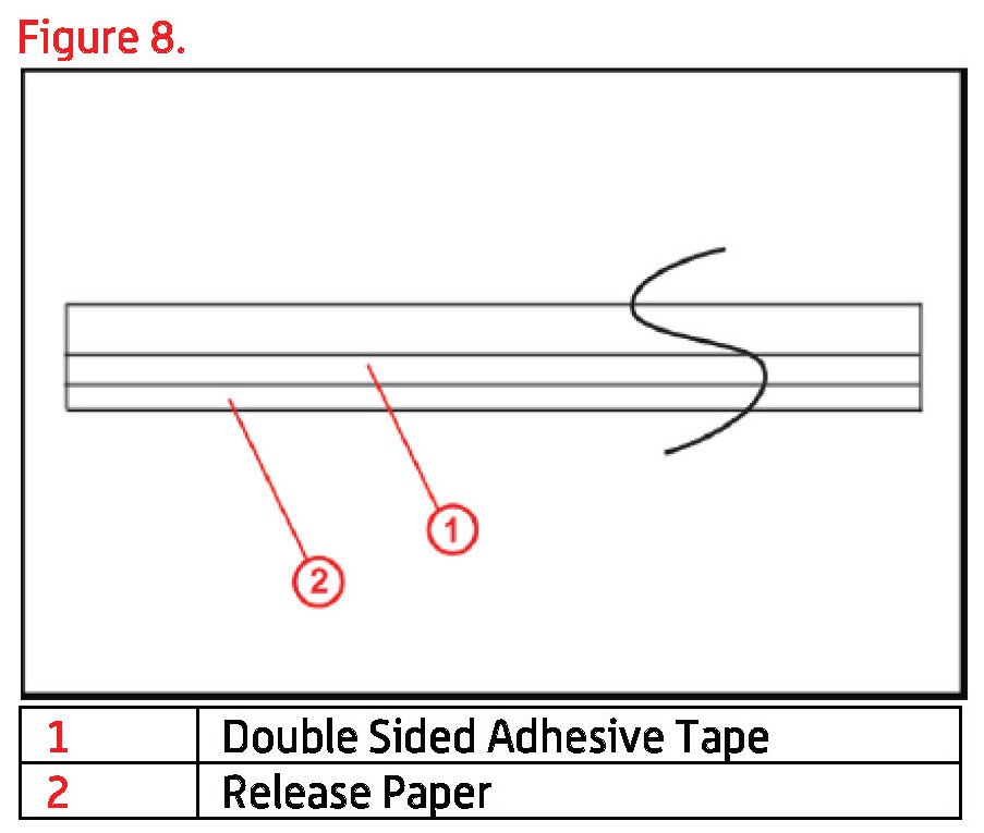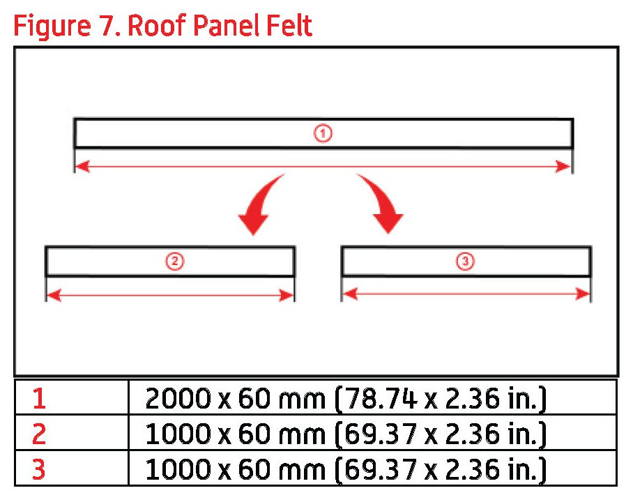 B. Remove the release paper and stick the felt into the gap between the roof panel and the Roof Reinforcement as indicated in Figure 9. The felt will be placed along the cross bar on both edges.