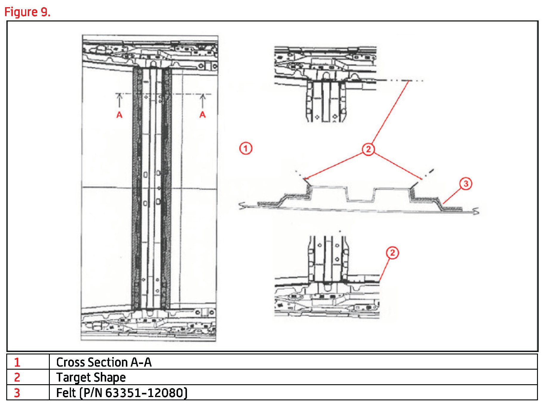 A. Cut the piece of felt (63351-12080) into two equal pieces as indicated in figure 7.