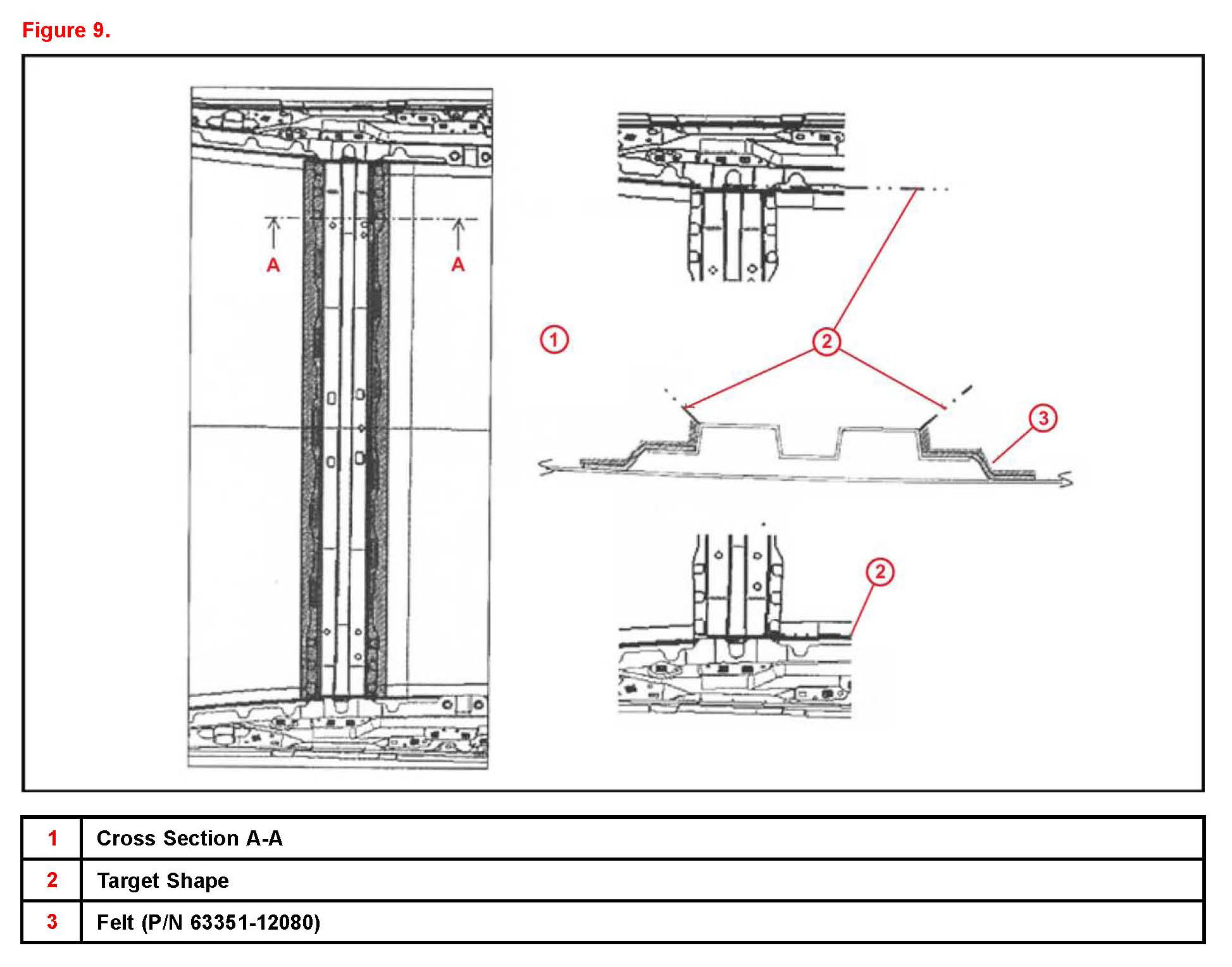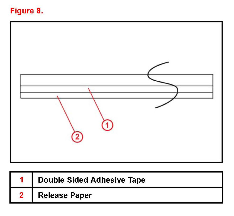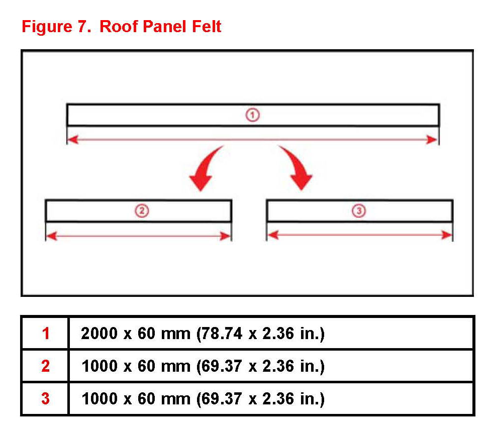 B. Remove the release paper and stick the felt into the gap between the roof panel and the Roof Reinforcement as indicated in Figure 9. The felt will be placed along the cross bar on both edges.