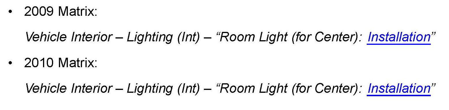 For dome lamp installation instructions refer to TIS applicable model year Repair Manual: