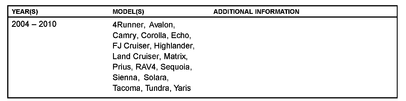^ Applicability has been updated to include 2009 and 2010 model year applicable vehicles.
