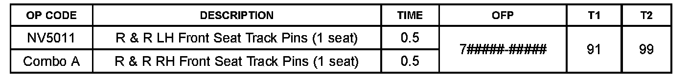 Some customers may experience a squeak noise due to contact between the seat track locating pin(s) and the floor pan location hole(s). The following procedure describes the repair method to correct this condition.