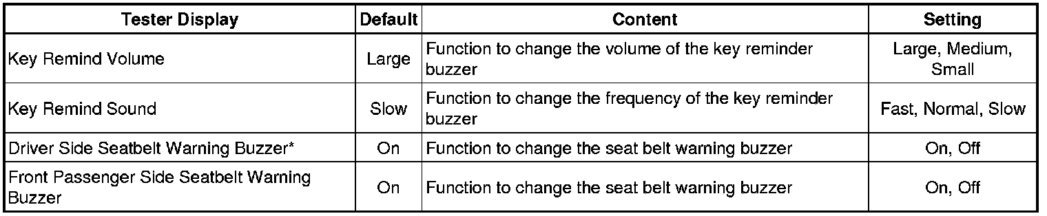 *: This setting is only valid for the buzzer which sounds at 20 km/h (12 mph) or more.
