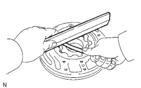 (e) Using a straightedge and feeler gauge, measure the side clearance of both gears.