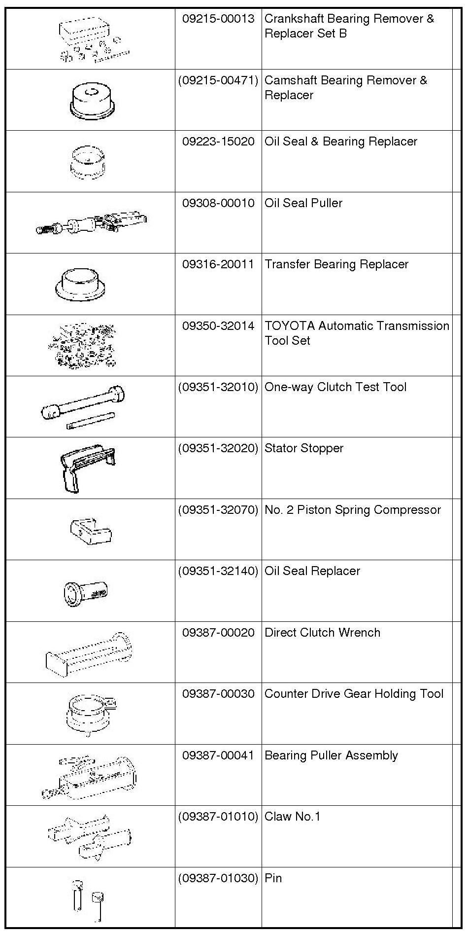 PREPARATION: U140F AUTOMATIC TRANSMISSION / TRANSAXLE: SST