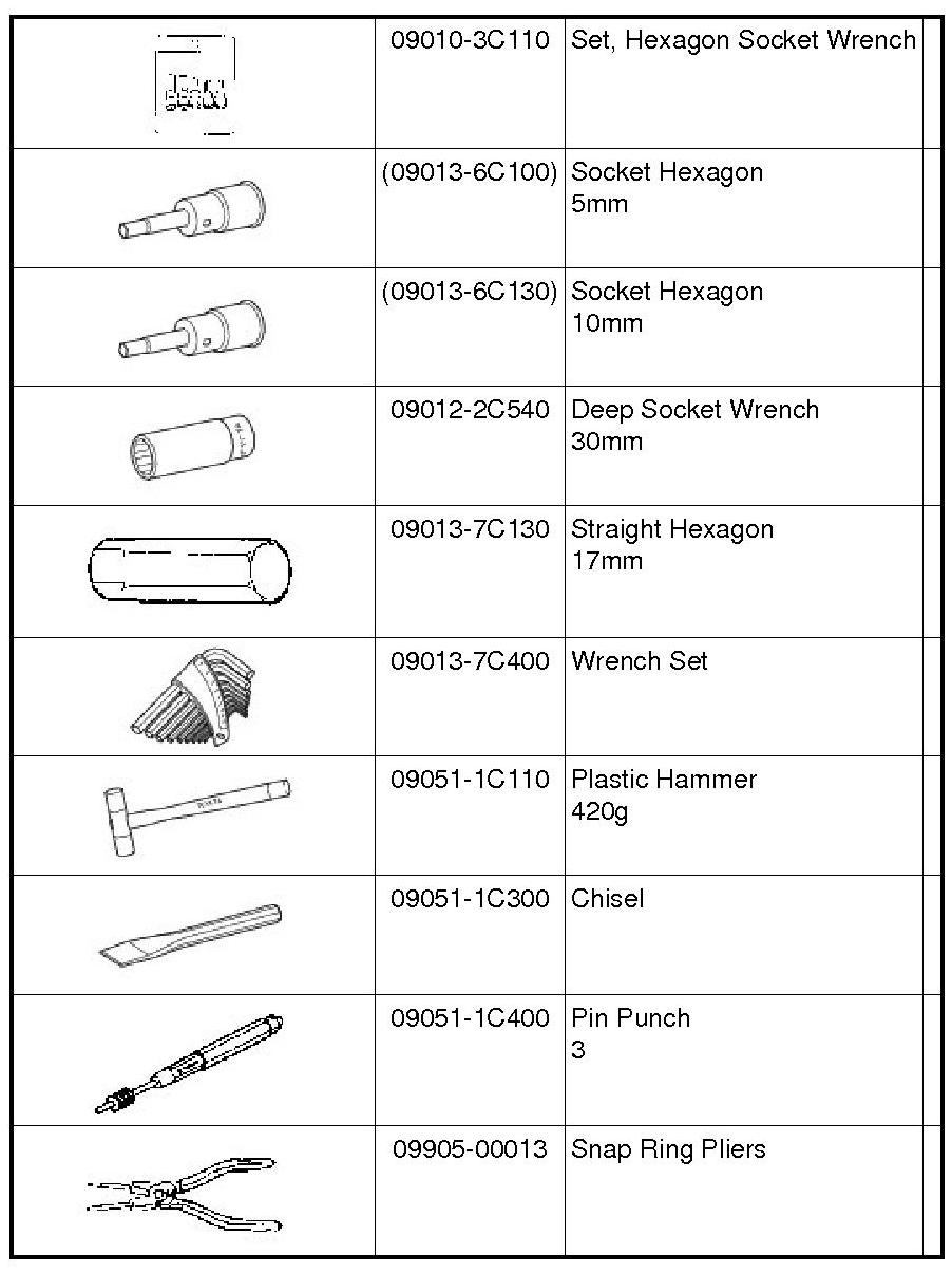 PREPARATION: AXLE AND DIFFERENTIAL: RECOMMENDED TOOLS