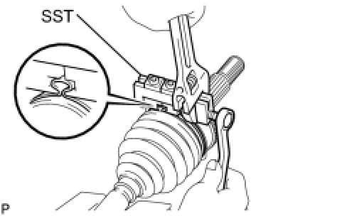 (a) Place SST onto the front drive shaft damper clamp, press it against the boot and slightly tighten SST.