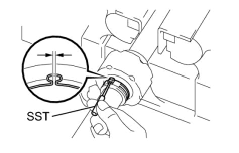 (b) Hold SST and tighten it so that the clearance comes within the specified range.