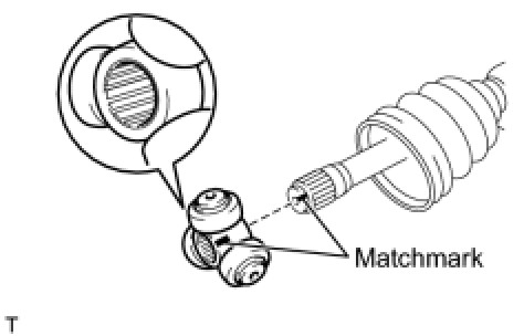 (d) Align the matchmarks and install the tripod joint onto the front axle outboard joint shaft assembly.