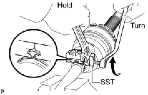 (d) Tighten SST so that the rear drive shaft inboard joint boot clamp is pinched.