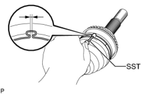 (c) Place SST onto the rear drive shaft outboard joint boot clamp.