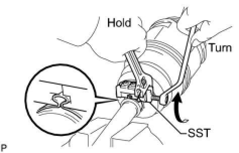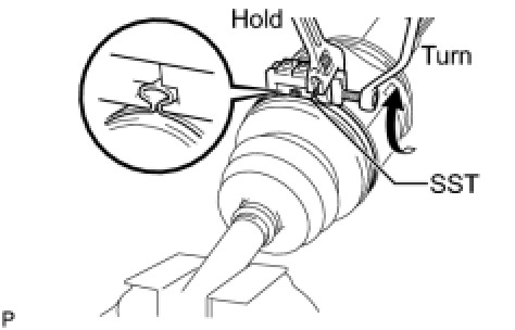 (d) Tighten SST so that the No. 2 rear drive shaft outboard joint boot clamp is pinched.