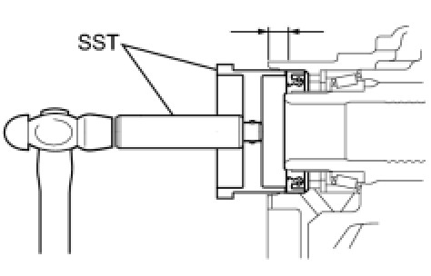 (a) Using SST, drive in a new transfer case oil seal into the transfer case until it reaches the position shown in the illustration.