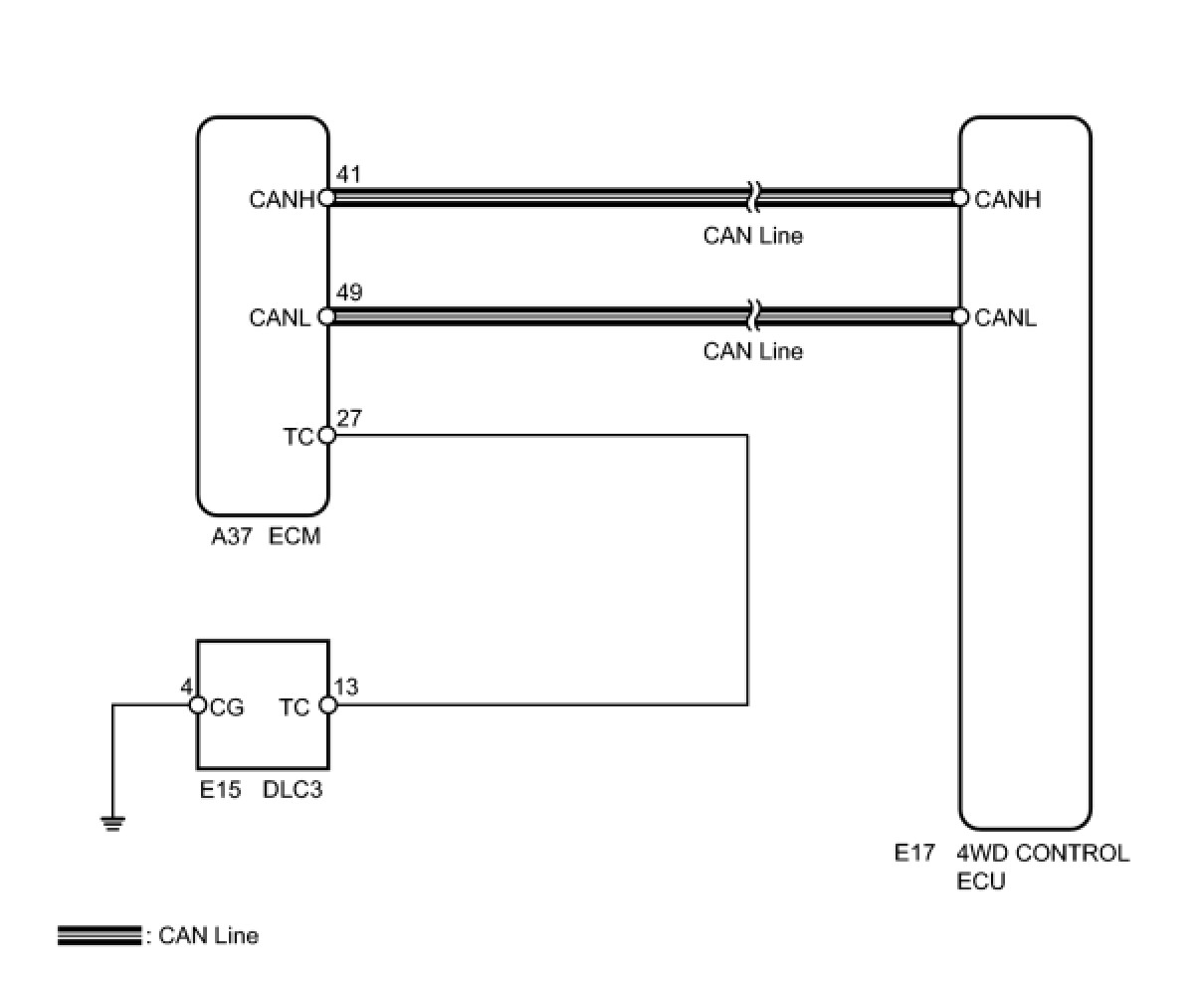 Connecting terminals TC and CG of the DLC3 causes the 4WD control ECU to display 2-digit DTCs by flashing the 4WD warning light.