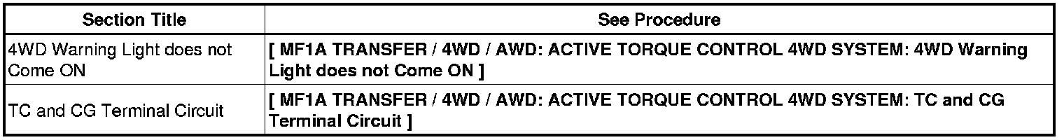 * If the 4WD warning light does not blink, perform relevant troubleshooting procedures. The relevant troubleshooting procedures are in the sections listed in the table below.