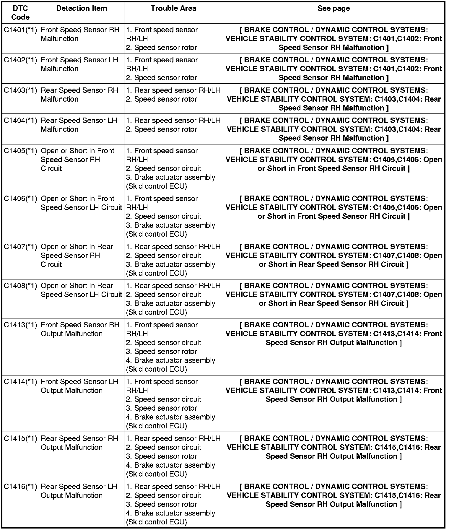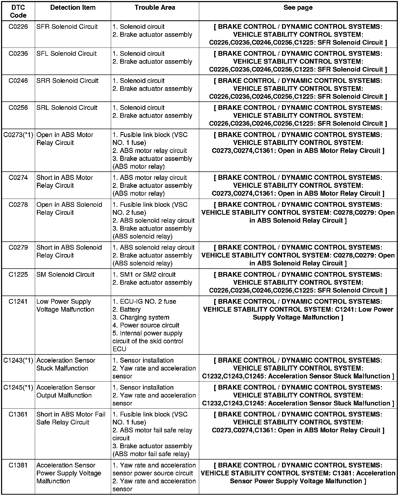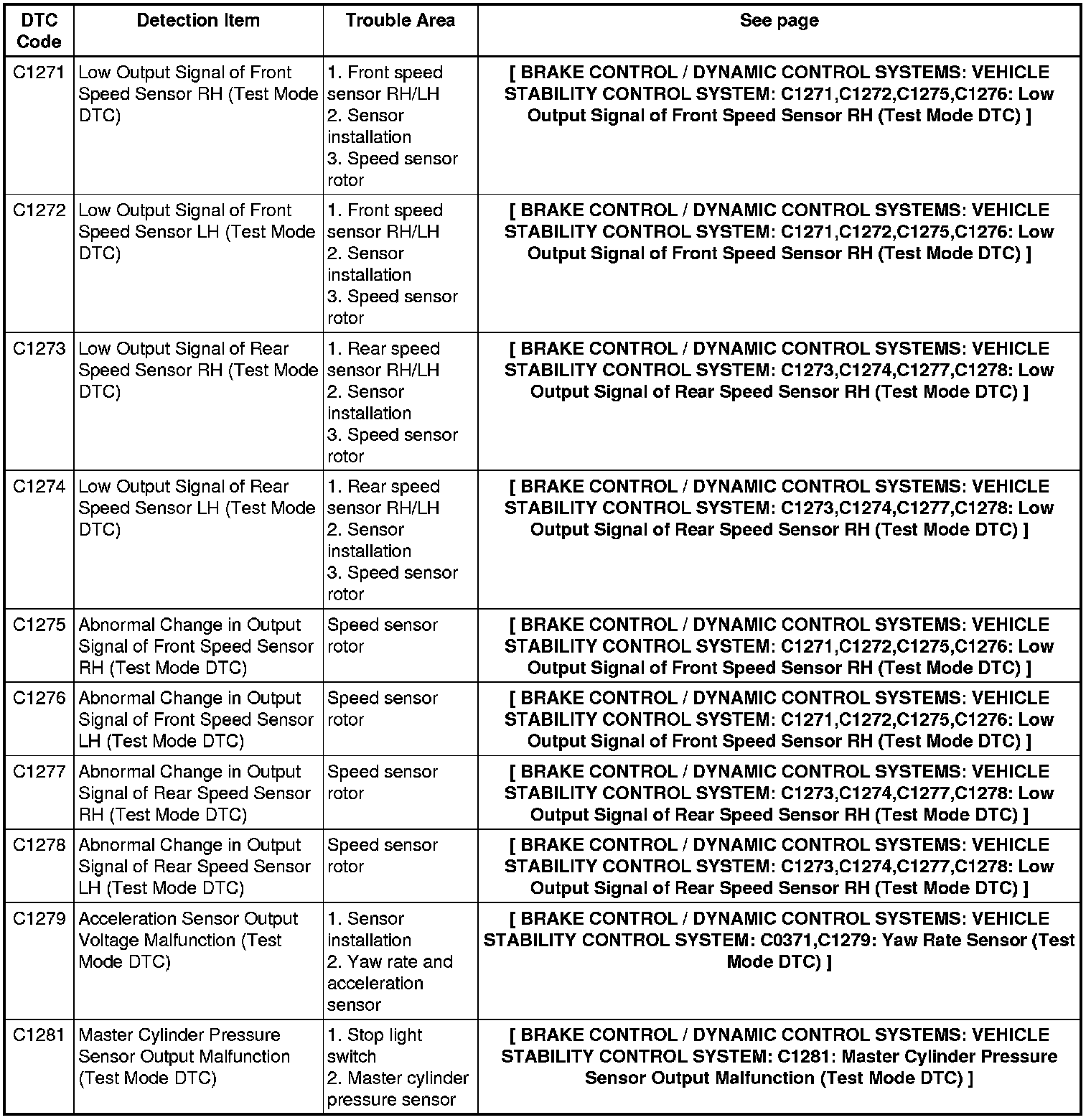 BRAKE CONTROL / DYNAMIC CONTROL SYSTEMS: VEHICLE STABILITY CONTROL SYSTEM (for 2ZR-FE): DIAGNOSTIC TROUBLE CODE CHART