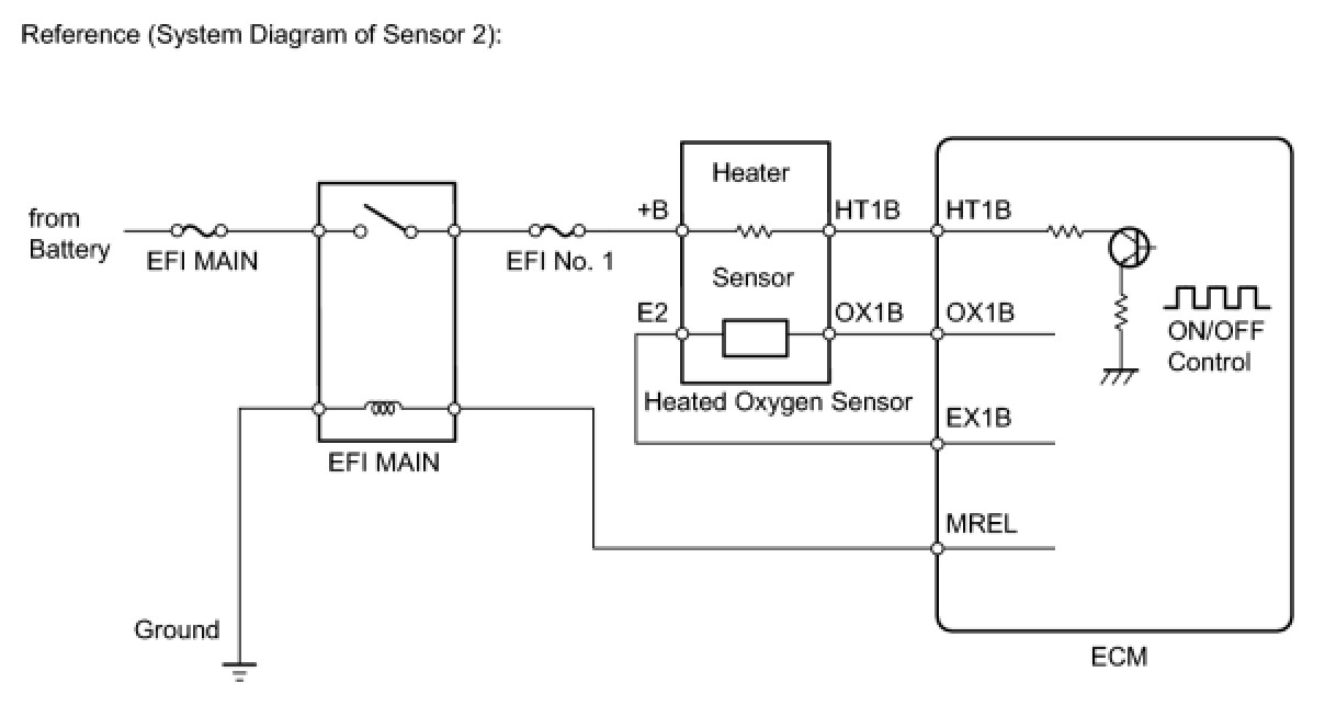 - The ECM uses pulse width modulation to adjust the current through the heater. The heated oxygen sensor heater circuit uses a relay on the +B side of the circuit.