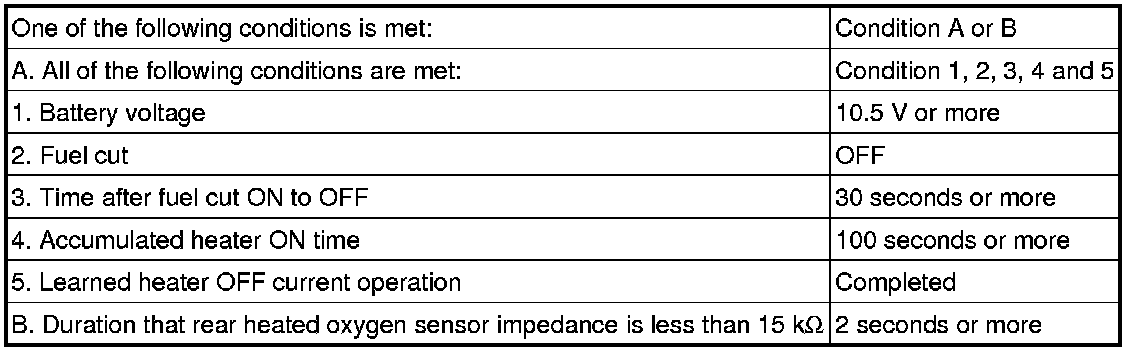 *The ECM monitors the current applied to the heated oxygen sensor heater to check the heater for malfunctions. If the current is below the threshold value, the ECM will determine that there is an open circuit in the heater. If the current is above the threshold value, the ECM will determine that there is a short circuit in the heater.