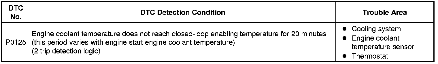 2ZR-FE ENGINE CONTROL: SFI SYSTEM: P0125: Insufficient Coolant Temperature for Closed Loop Fuel Control