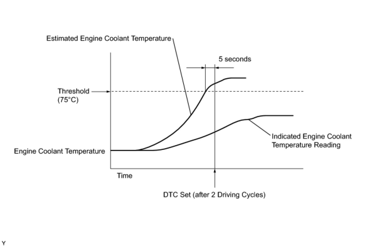 This DTC is set when the engine coolant temperature does not reach 75°C (167°F) despite sufficient engine warm-up time having elapsed.