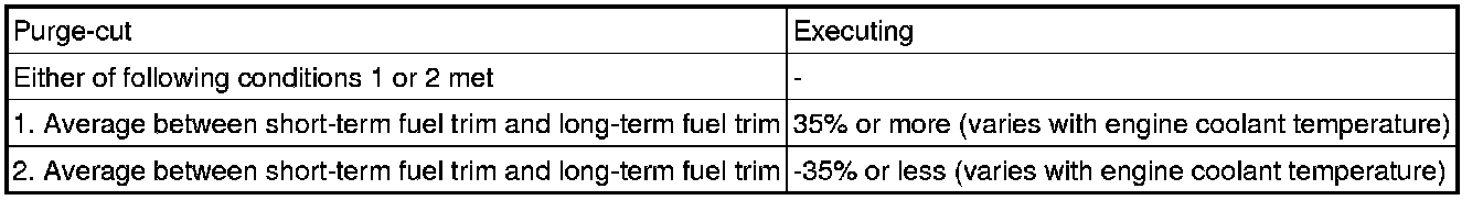 The average fuel trim learning value is more than +35% or less than -35%, the ECM interprets this as a fuel system malfunction.