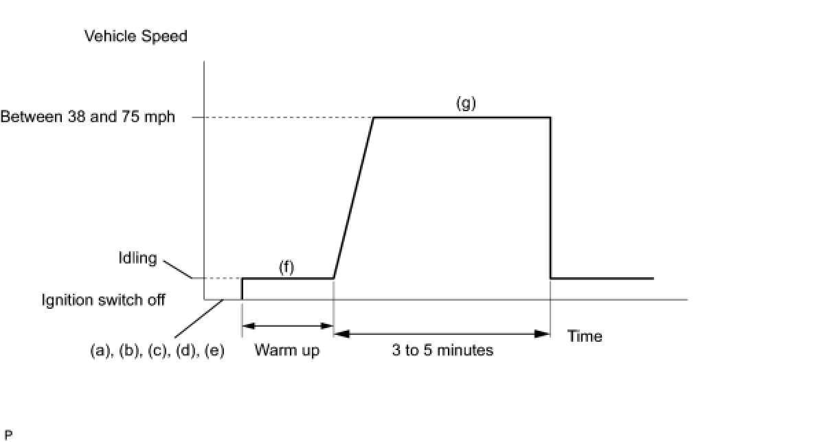 (f) Drive the vehicle at between 38 mph and 75 mph (60 km/h and 120 km/h) and at an engine speed of between 1400 rpm and 3200 rpm for 3 to 5 minutes.