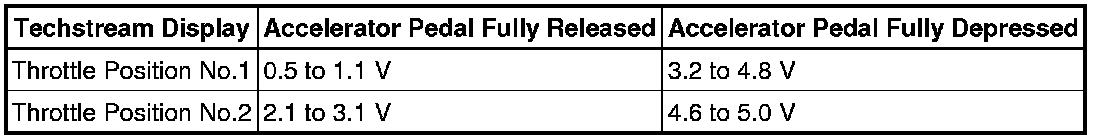 - Throttle Position No. 1 denotes the VTA1 signal, and Throttle Position No. 2 denotes the VTA2 signal.