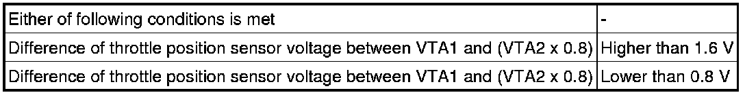 - A specific voltage difference is expected between the sensor terminals, VTA1 and VTA2, for each throttle valve opening angle. If the difference between VTA1 and VTA2 is incorrect, the ECM interprets this as a malfunction in the sensor circuit, and sets a DTC.