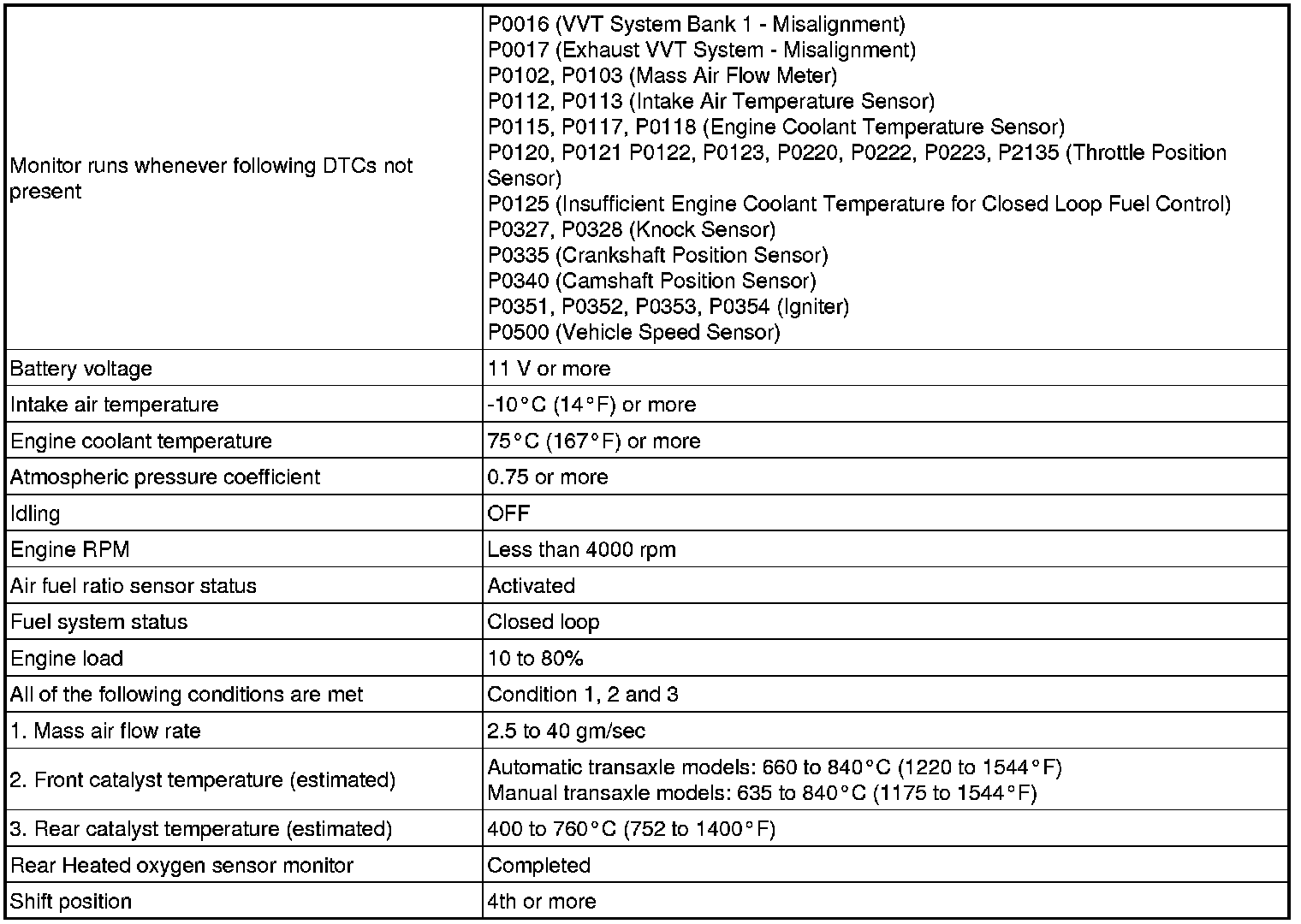The ECM uses the oxygen storage capacity value to determine the state of the three-way catalytic converter. If any deterioration has occurred, it illuminates the MIL and sets the DTC.