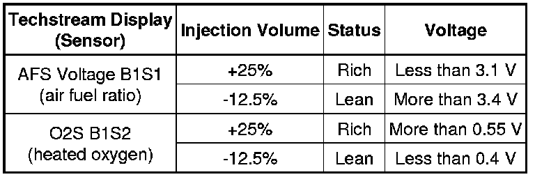 - The Control the Injection Volume for A/F sensor operation lowers the fuel injection volume by 12.5% or increases the injection volume by 25%.