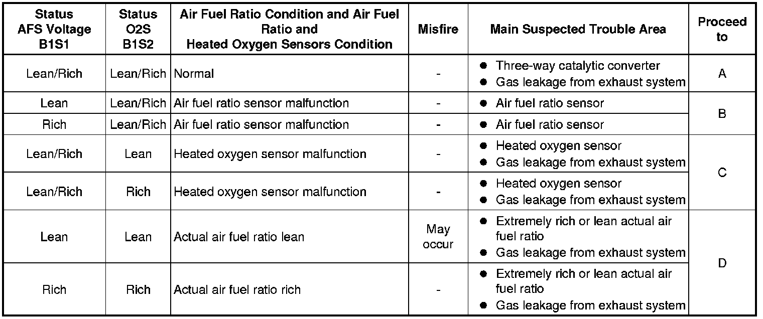 D -- CHECK ENGINE TO DETERMINE CAUSE OF EXTREMELY RICH OR LEAN ACTUAL AIR FUEL RATIO, AND GO TO STEP 3