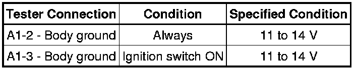 The normal conditions are as shown in the table below. The signals can be read using the Techstream.