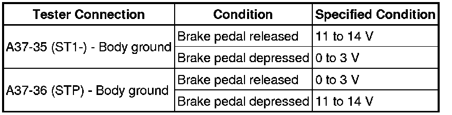 (5) Check the STP signal when the brake pedal is depressed and released.