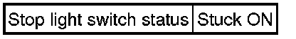 This DTC indicates that the stop light switch remains ON. When the stop light switch remains ON during "stop and go" driving, the ECM interprets this as a fault in the stop light switch and the MIL comes on and the ECM stores the DTC. The vehicle must stop (less than 1.86 mph [3 km/h]) and go (18.65 mph [30 km/h] or more) 5 times during 2 driving cycles, in order to detect a malfunction.