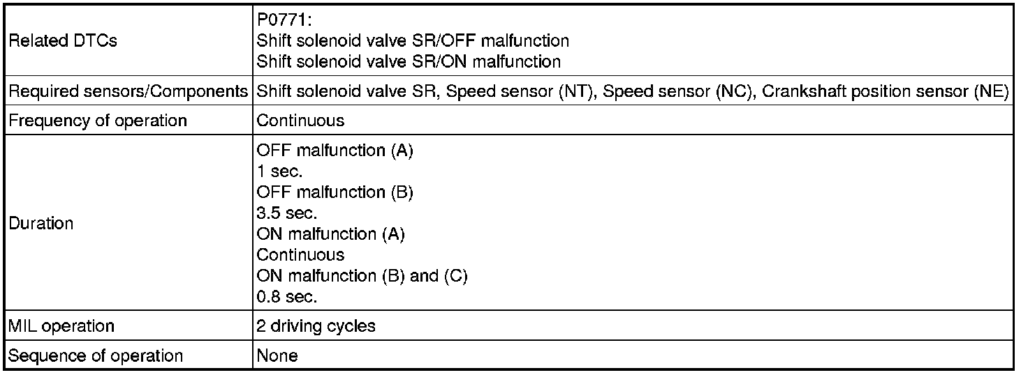 U250E AUTOMATIC TRANSMISSION / TRANSAXLE: AUTOMATIC TRANSAXLE SYSTEM: P0771: Shift Solenoid "E" Performance (Shift Solenoid Valve SR)