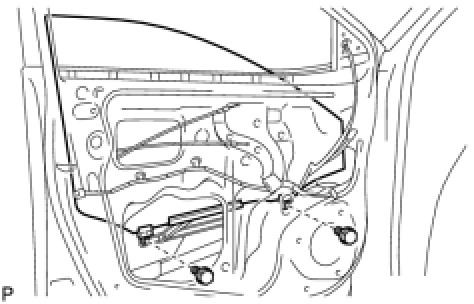 (d) Remove the front door window regulator sub-assembly and the front power window regulator motor assembly as a unit.
