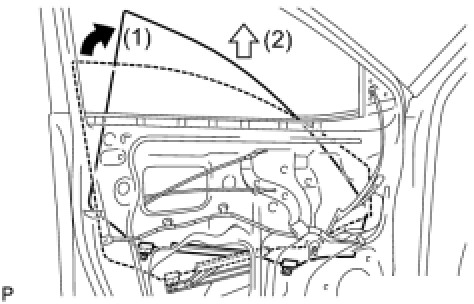 (d) Remove the front door glass sub-assembly as shown in the illustration.